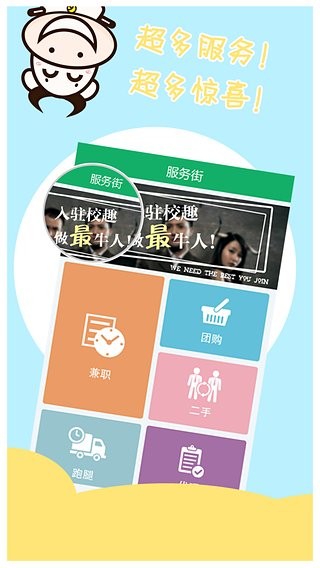 兼职公会app是一款专注于校园服务的客户端应用,在兼职公会你你可以任性发布您的需求,各路大神将来帮助您,在线找人陪玩、修理东西、取快递给您最便捷的生活,您也可以出售您的时间技能,赚取收益,功能强大,快来下载体验吧! 功能介绍 东西丢了怎么办? 电脑死机不会搞怎么办? 寂寞找不到人陪玩怎么办? 宅在寝室不想下来取快递怎么办? 还有……万一上厕所没带纸,"肿、么、办"??!! “兼职公会”是一款校园o2o产品,收集了校园里能给学生提供服务的组织及商家, 方便学生解决自己的需求! 学生遇到校园生活中的需求时,可以通过兼职公会发布有偿任务来请同学帮忙解决; 同时,有技能的学生也可以在我们平台上出售自己的技能、时间、资源等。 专注大学校园服务五百年! 软件特色 1、紧急需求紧急发布,有钱好办事儿; 2、没事常来兼职公会,出售你的技能; 3、有服务,不挂兼职公会,你想烂脑浆里吗?