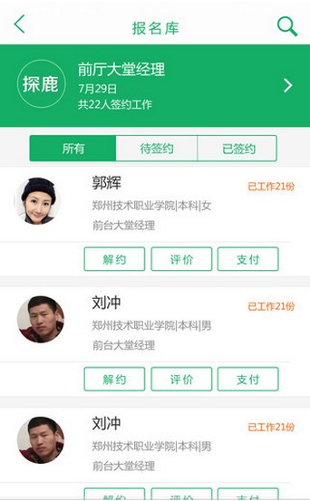 探鹿兼职商家版是一款专门为商家准备的掌上招聘软件。探鹿兼职商家版可以让企业用手机就建立品牌并完成招聘,招聘人才,一个手机就搞定,就是这么便捷! 软件特色 更省钱 商家店铺永久免费,节省用人成本 更快捷 手机APP直接招聘,用工无需等待 留人才 企业专属人才库,让人力真正成为资源 树品牌 根据用工评价,帮企业树立优质雇主品牌 功能介绍 建立雇主品牌 专属人才库为您留住资源 做回放手管家 手机app搞定人员管理 便捷支付功能 支持批量发放工资 更新日志 修复一些已知的BUG。