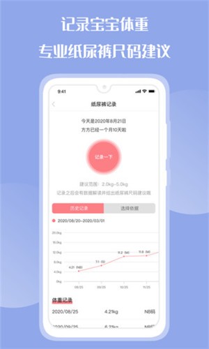 【纸尿裤记录】智能推荐纸尿裤尺码,宝宝更舒适,家长更舒心;