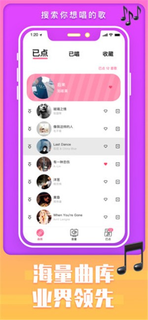K吧app将您的手机变成ktv的遥控器无论是歌名歌星歌词专辑点歌、全程手机上解决。麦霸们再也不用排队点歌了,轻松掌握KTV包房的一切。