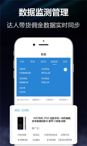 「数据监控」 数据分析,实时掌握推广情况,让每一笔佣金来源一目了然