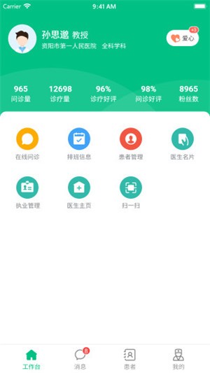 健康资阳医护版是一款服务于医生用户,支持其完成图文咨询、患者管理、排班信息、医生名片等功能,极大地提高了医护人员的工作效率。