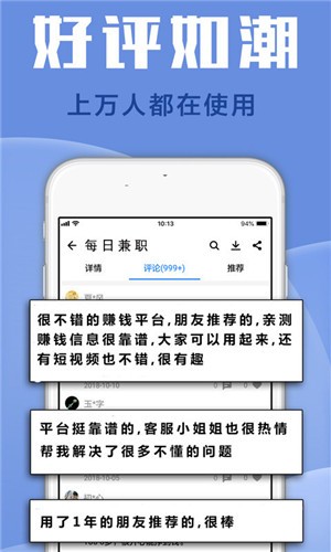 兼职任务应有尽有,在家轻轻松松赚钱,为用户提供一个简单实用的兼职服务。兼职任务应有尽有,在家轻轻松松赚钱,为用户提供一个简单实用的兼职服务。
